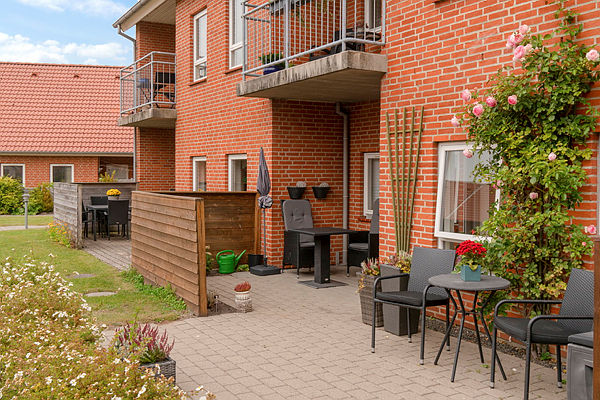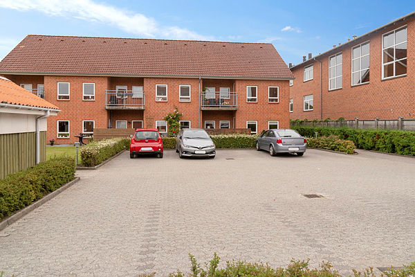 Der er have til alle rækkehusene i stuen og altan til de øvrige boliger. Der er parkeringspladser og elevator i afdelingen.